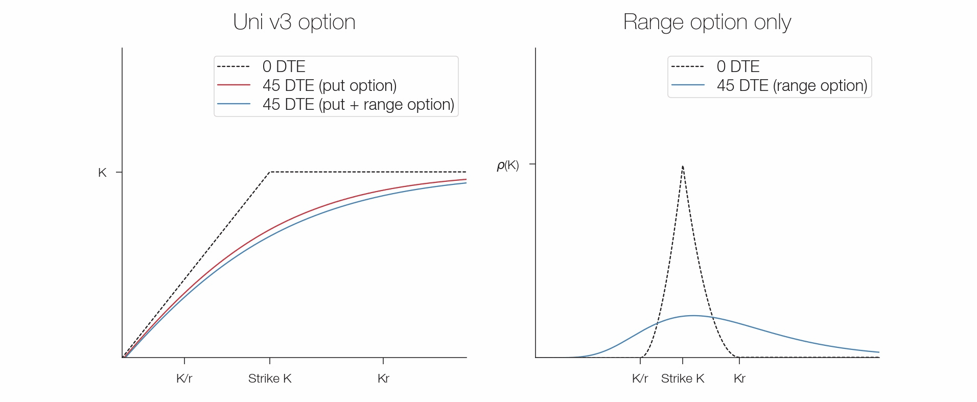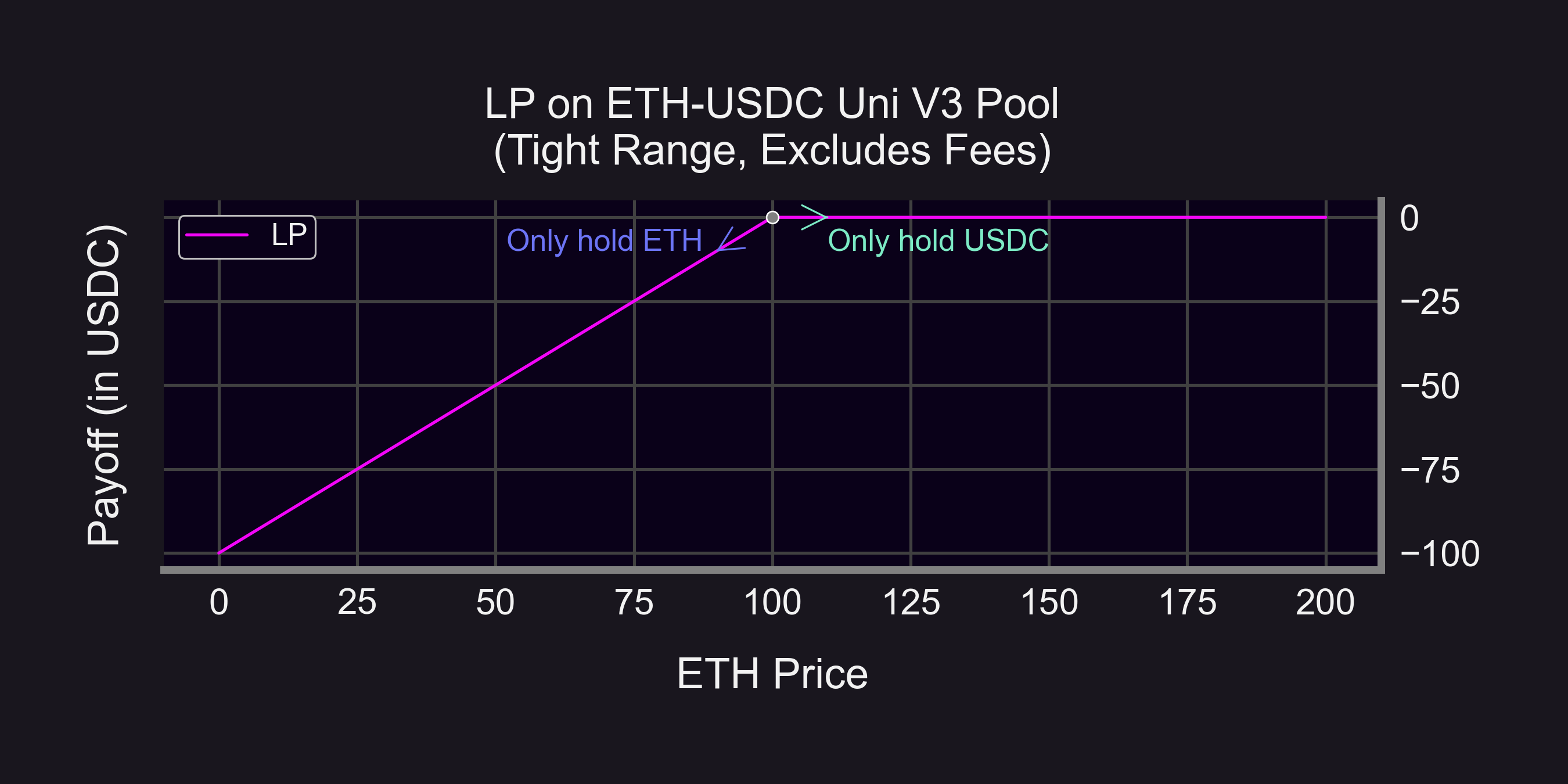 This structure mirrors the payoff of a put option. In fact, a one-tick-wide LP position looks exactly like an expiring put option. The difference is that, in Uniswap, liquidity providers receive continuous option premiums in the form of spot trading fees, rather than upfront payments.