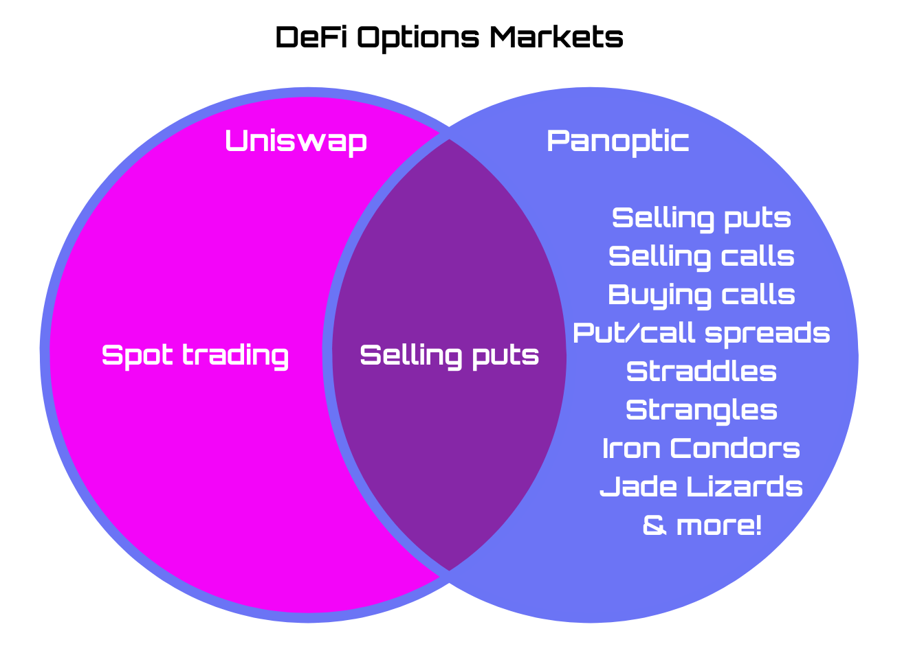 So, Uniswap allows you to sell puts (by providing liquidity), but what about buying puts or trading call options? Enter Panoptic.