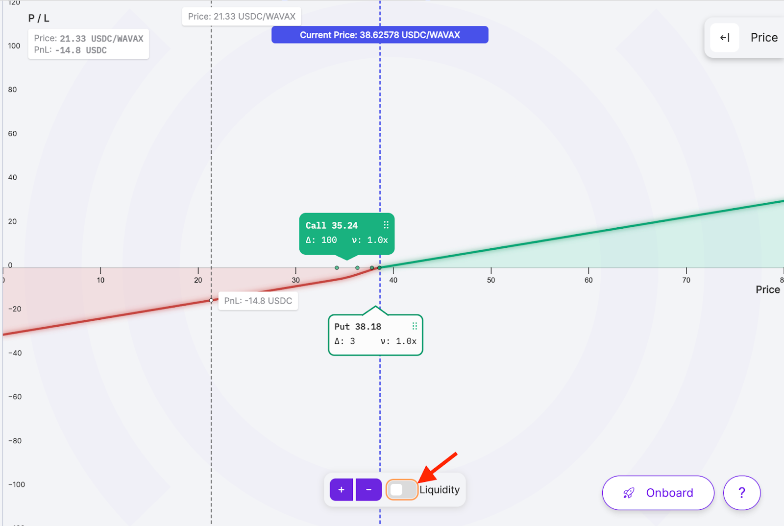 3. Choose a contract: Drag the option leg towards a taller liquidity bar, indicating deeper liquidity, to select that contract.