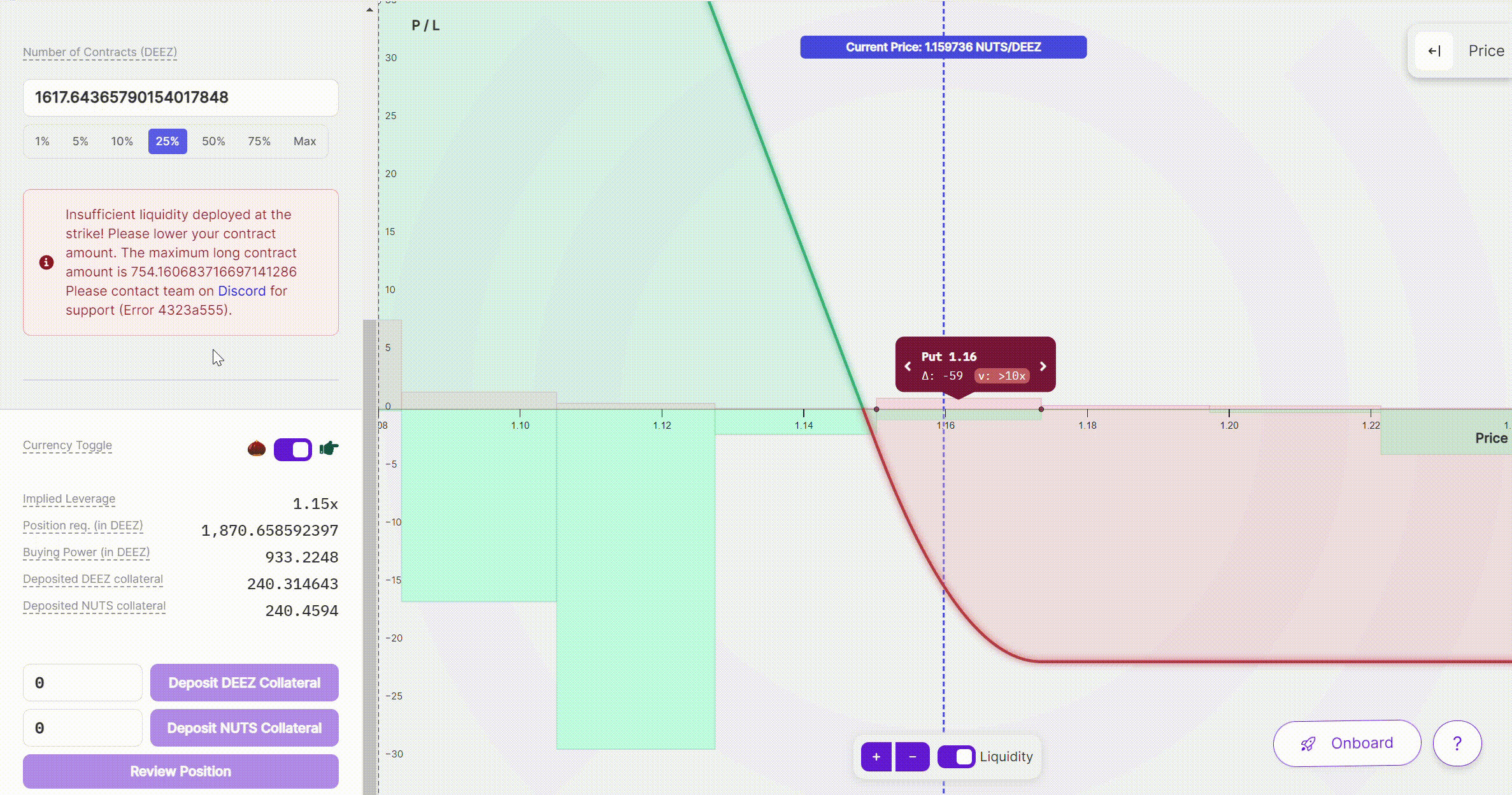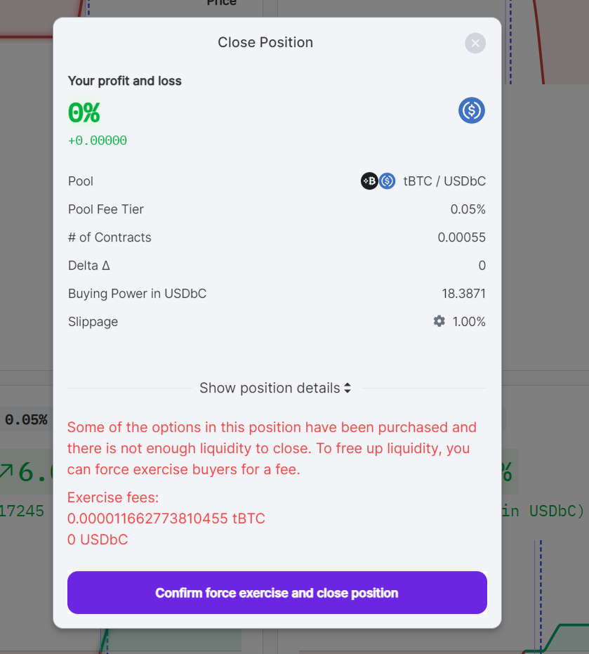 To mitigate the issue of low liquidity, consider decreasing the number of contracts you wish to trade. Panoptic supports trading in fractional contract sizes, allowing greater flexibility in managing your investment according to available market liquidity.