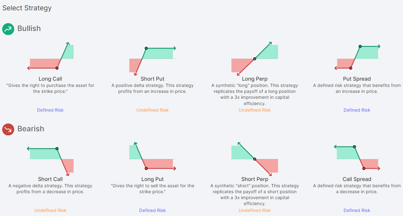 As mentioned, traders on panoptic can select a given strategy or manually assemble their own legs to create their own strategies. On Panoptic, users can select from dozens of one-click strategies according to their trading needs.