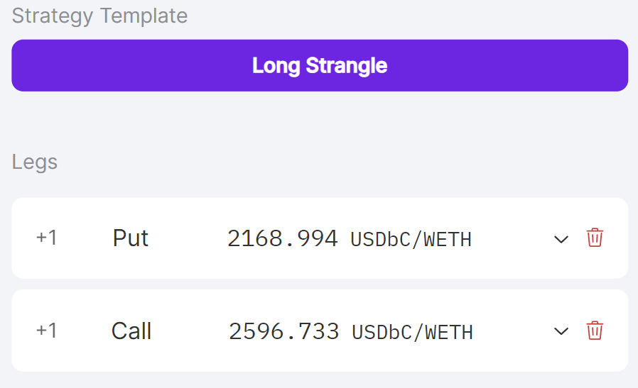 Once traders select a strategy, panoptic will automatically create the necessary legs. Once selected, a list of the strategy’s legs will appear.