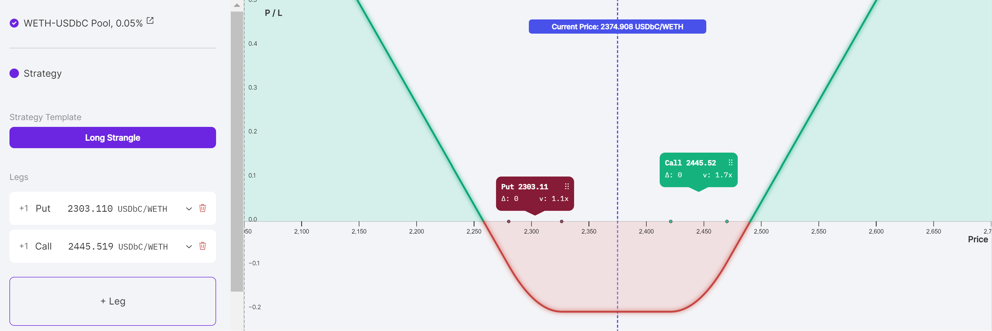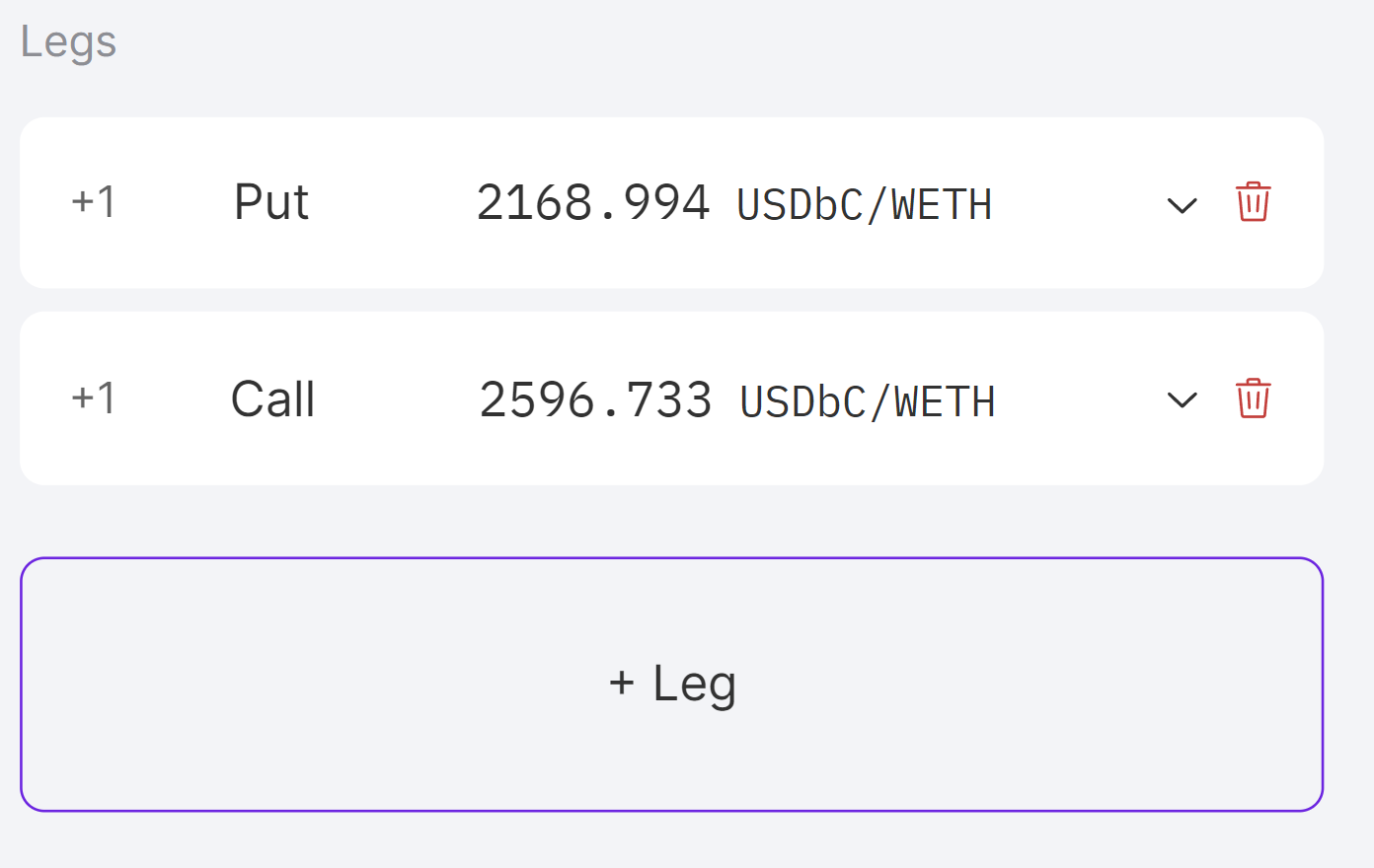 Legs are at the heart of options strategies and allow for greater flexibility and capital efficiency. Panoptic makes it easy for both the beginner and advanced traders to build their desired strategy.