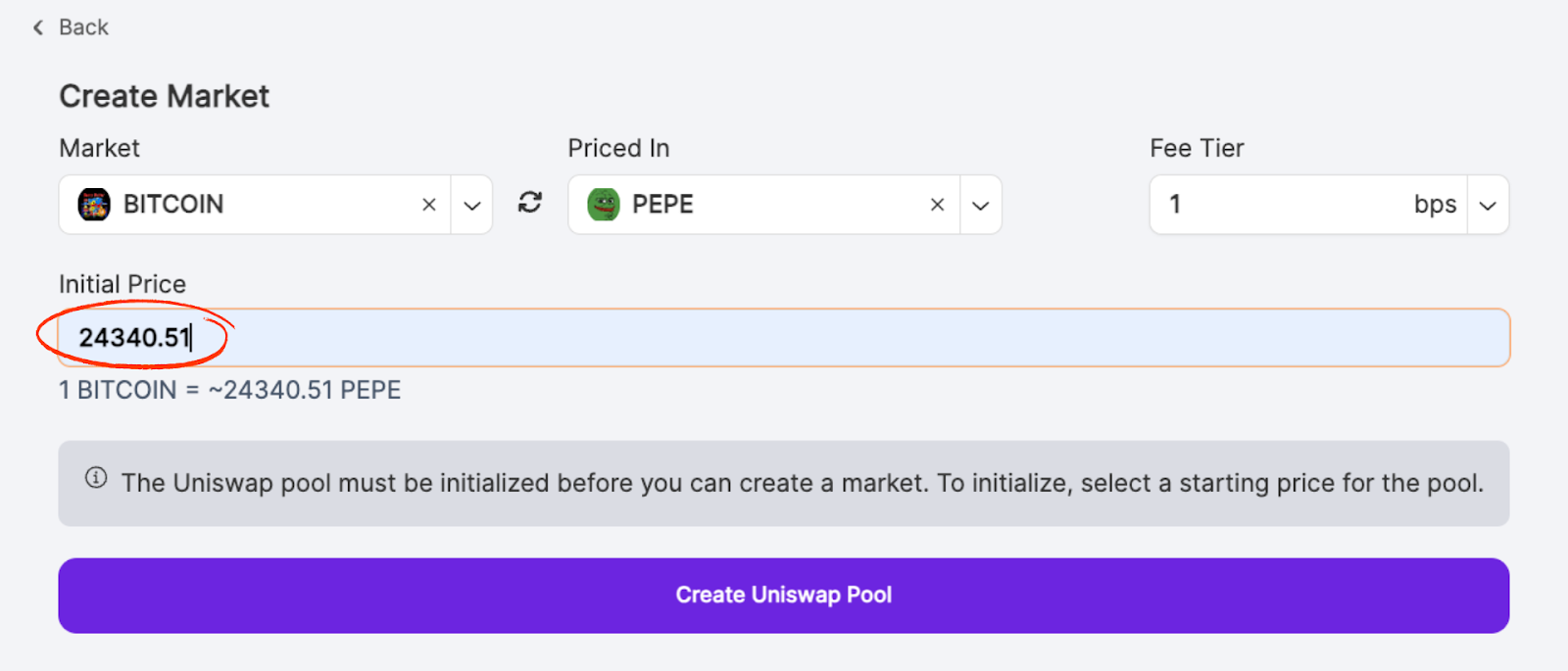 Create the Uniswap Pool (if needed): If a corresponding Uniswap pool doesn’t exist, you’ll be prompted to create one. Set the initial price of the Uniswap pool and click “Create Uniswap Pool.”