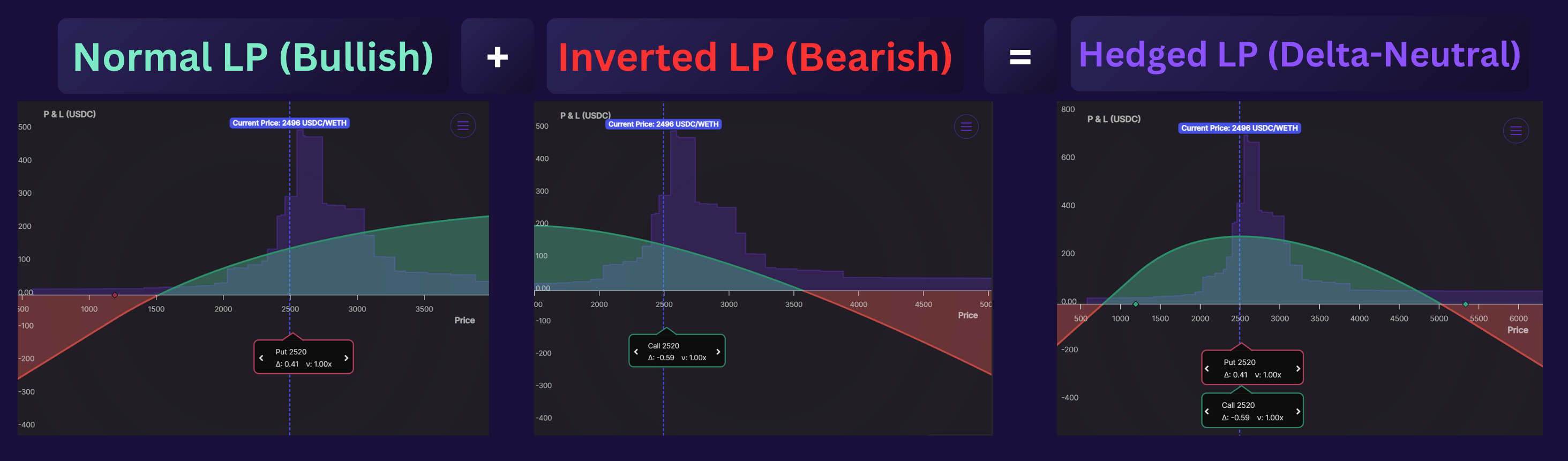 • Strategy: Delta-neutral = Hedged LP by combining normal and inverted positions